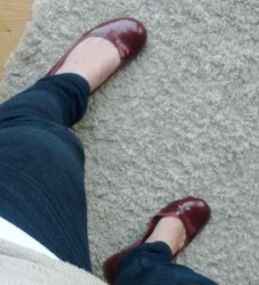 I went for a mixture today, skinny navy jeans with maroon colour pumps from Clarks (difficult to find - these are the closest I can find) and my Primark lacy t-shirt layered over a vest. I've added a Topshop boyfriend cardigan over my shoulders...there was still a nip in the air out in the park.