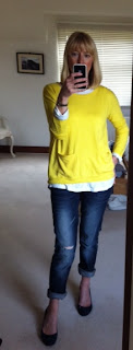 | Casual look with Zara Boyfriend Jeans (Similar) Yellow Jumper from Whistles |