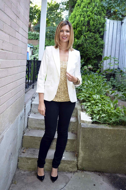 I wanted to wear something fun and sparkly – the stars were in town – but I was taking the subway downtown and theatres tend to be cool so I knew I was wearing a blazer. I get cold easily. My colour scheme quickly became white, black and gold. Basic and easy, however, it is classic and fashionable.