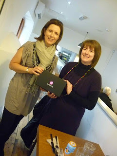 Technology prevented me from posting this at the weekend so belatedly, here is a photo of Lynne Douglas, the winner of my February Carmine Beauty Box competition. I used to work with Lynne so this was a good excuse to meet up and catch up. The Fat Gherkin was convenient for both of us so the lovely Olwyn took our photo...
