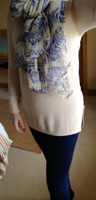 I'm not really built for jumpers. They add inches to my frame so I'm always on the look out for fine knits that hang nicely. I also like a bit of interesting detail. So this £7 bargain ticked both boxes. And the bonus is that it matches my Primark Zebra scarf...