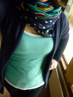 Wearing my Boden navy cardigan (all sold out - similar on link) this afternoon with a couple of Gap vests layered underneath. To pull the look together,