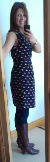 ReplyDeleteThe shape of the dress is perfect on you... do you have any ankle boots that would work with tights - eg tan?