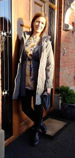 - that cold weather hit again this weekend and I'm very glad of this cosy coat. Underneath, I'm wearing the olive version of my black Tesco top. I picked this up at Tesco in Newtownbreda for just £5 the other day (love a bargain!), layered with a charcoal H&M cardigan (similar on link), a Monsoon skinny black belt, black jeggings from M&S and my Carl Scarpa boots.
