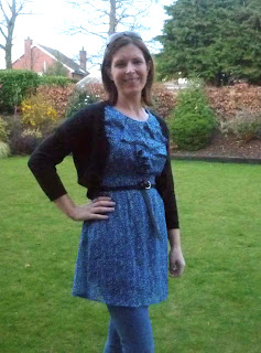I talked about cardigans just last week so you're probably guessing (correctly) that I have rather a lot of them! As my budget wardrobe is all about getting lots of wear from each item, cardigans are one of my tools for doing this. Here I am in the same dress with a black cardigan...