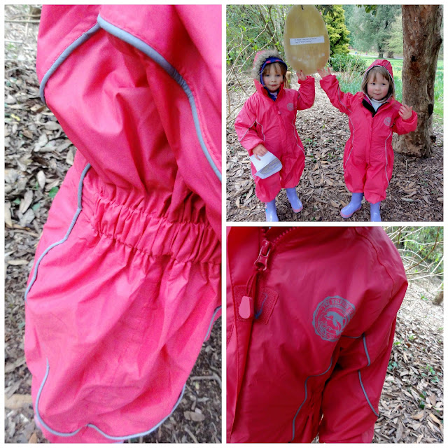 The girls are wearing the Rascal rain suit. I'm a huge fan of rain suits for kids as they are great for layering up with coats in colder weather (as we did here) but also to wear in less cold weather over their clothes. Perfect for trips to the beach as I seem to have bred children that want to run into the sea no matter what the weather is like. These suits are lightweight and tiny when packed away, easy to put on and take off and have plenty of room underneath for the layers and to allow for growth. My girls are about 105 cm tall and are wearing the age 5-6 suit which is a little big for them but will do them for well over a year from now.