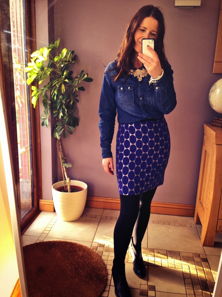 Do you know, it is one of those outfits that I just love wearing. It's quite dressy for the school run, but the denim and the ankle boots dress it down a bit - I'll definitely not wait until next February to wear it again!